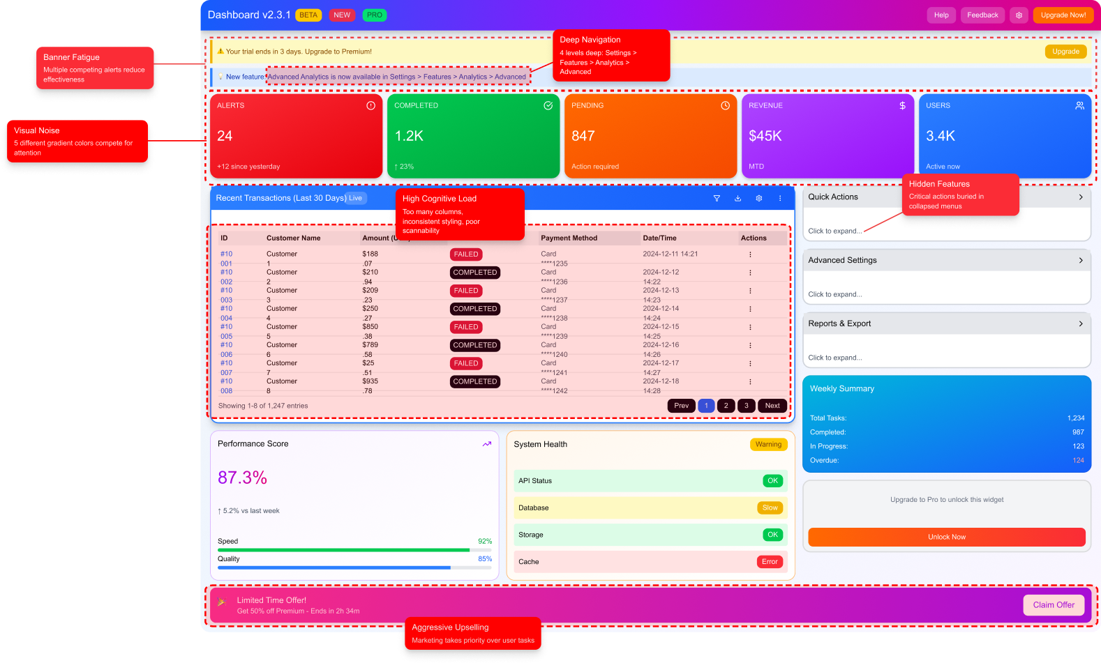 Over time the dashboard became overloaded with metrics, shortcuts, and widgets added by different teams. Everything had equal weight, so nothing stood out. Users didn’t know where to start, which slowed their workflow and increased support tickets
